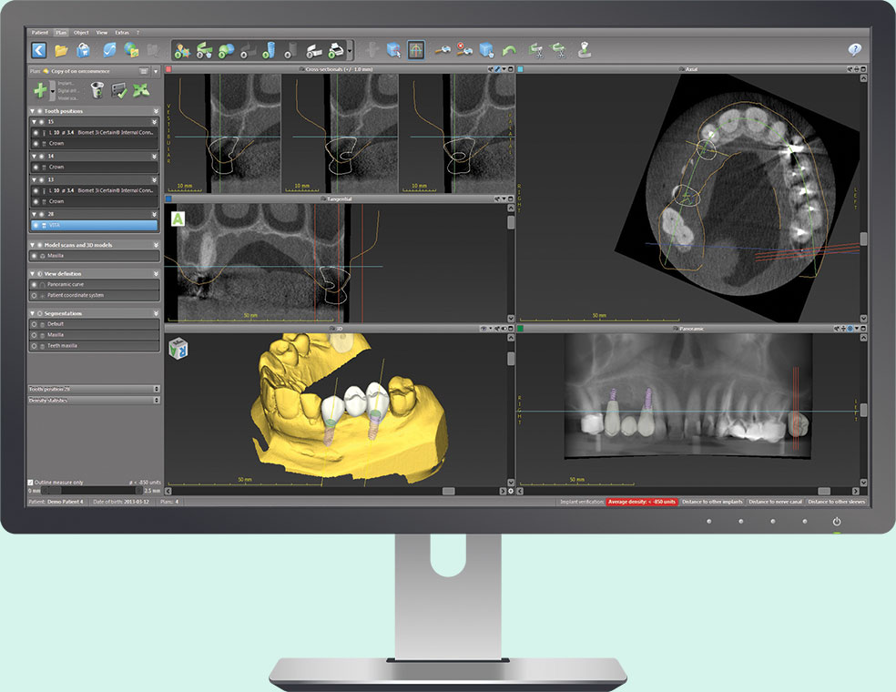 Lập Kế Hoạch Chính Xác – Quy Trình Hiệu Quả: Phần mềm mô phỏng ảo, cho phép thiết kế vị trí implant 3D trên máy tính 1 cách tỉ mỉ khi tích hợp được hình ảnh x-quang xương và mô mềm 3D như trong khoang miệng của bạn. Phần mềm tích hợp liền mạch với các công nghệ kỹ thuật số khác, tiết kiệm thời gian và nâng cao hiệu quả.