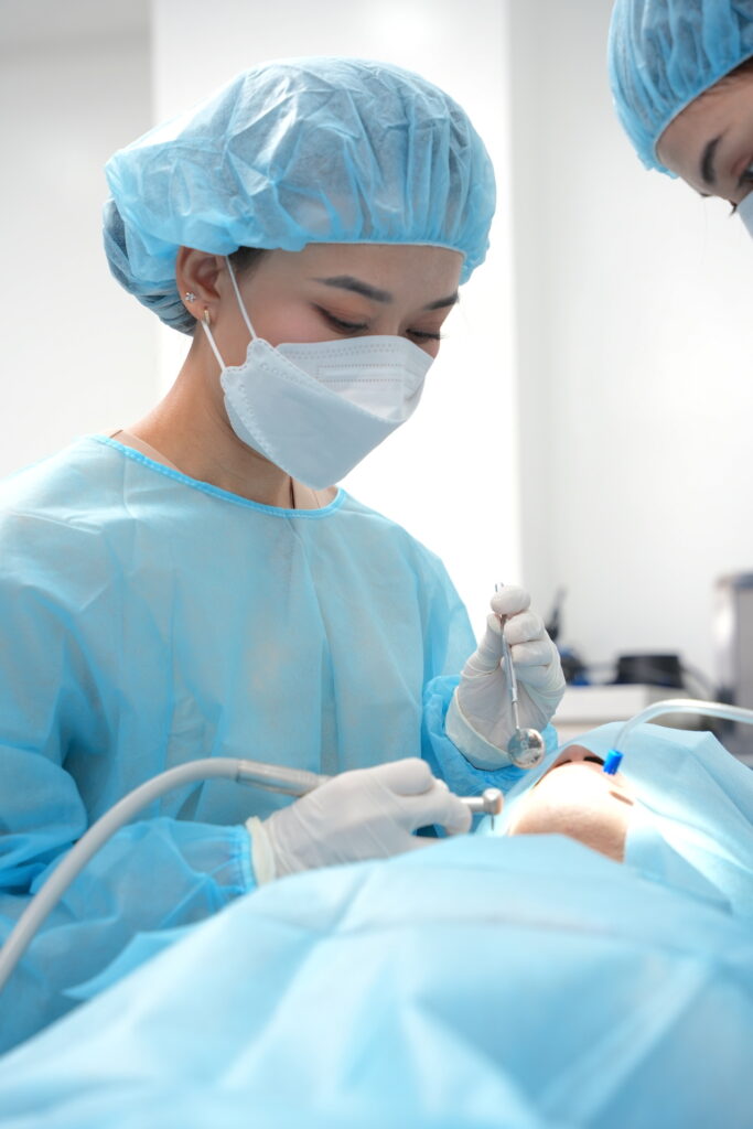 - 1. Khám và tư vấn: Bác sĩ sẽ kiểm tra kỹ lưỡng và chụp X-quang để đánh giá vị trí, hình dạng và tình trạng chân răng và các cấu trúc xung quanh. Việc này giúp bác sĩ lập kế hoạch nhổ răng một cách an toàn và chính xác. Nếu cần thiết bác sĩ sẽ hướng dẫn bạn ngưng sử dụng một số loại thuốc.