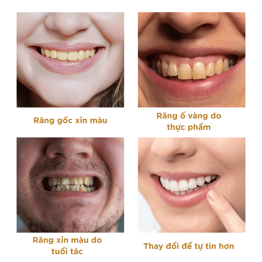 – Người có răng xỉn màu, ố vàng do thói quen uống trà, cà phê, …