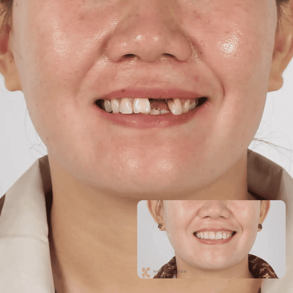 – Mất 1 răng gần đây : Muốn khôi phục lại để ăn nhai thoải mái, giữ nụ cười đẹp và tự tin.